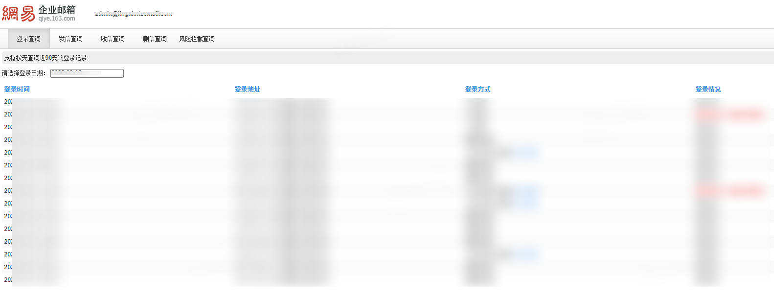 可查询一段时间内用户通过Webmail及客户端登录情况,有异常及时发现