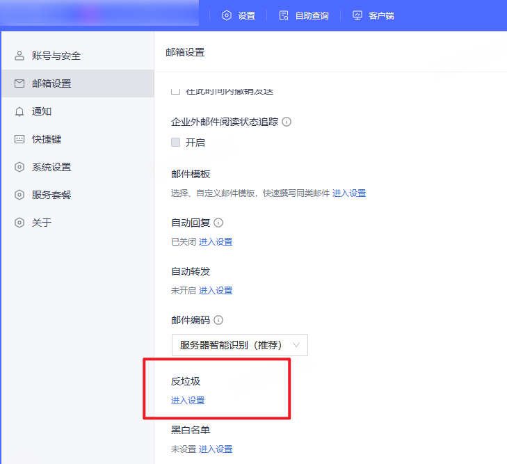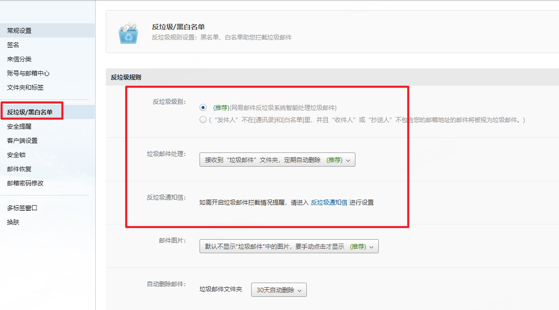 可在邮箱中进行反垃圾级别和反垃圾通知信设置,有效拦截垃圾邮件